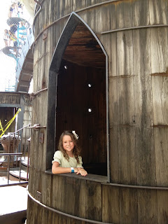 We began our visit with an elevator ride to the 10th floor to enjoy the roof. And the kids immediately spied out the two story slide that soared to the middle of the building. The way to the top of the slide was a steel tunnel basically built directly on top of the slide. So you climbed two stories to the top (Not easy at all for a 6 footer), then got in line to slide down under the tunnel you just came up. Magan got in line for the ferris wheel...and stayed in line for a long time...while the kids played on all of the other slides. I got to watch little Ru, who found a goat made of recycled steel and laughed and growled at this goat for a long time. She is just too cute. Also, did I mention that it was about 95 degrees...so the roof was a little hot. Belle liked the water area with stepping stones...I was just terrified the whole time that she would fall in. Ruby liked to pick up all of the little yellow ducks and throw them. To end our time on the roof, me and the boys went to the 10 story slide to the bottom. And I must say this was the longest slides ever, and I did not slide...so basically scooted my butt down what ended up being about 7 stories. Sam had the same difficult experience, but apparently Davis was greased up better as he said he went pretty fast. We ended up in a "Cave" of slides and tunnels, that took us 15 minutes just to figure out how to get out. Seriously I was completely lost, until Sam came up with the ingenious idea of using the brightly illuminated EXIT signs.