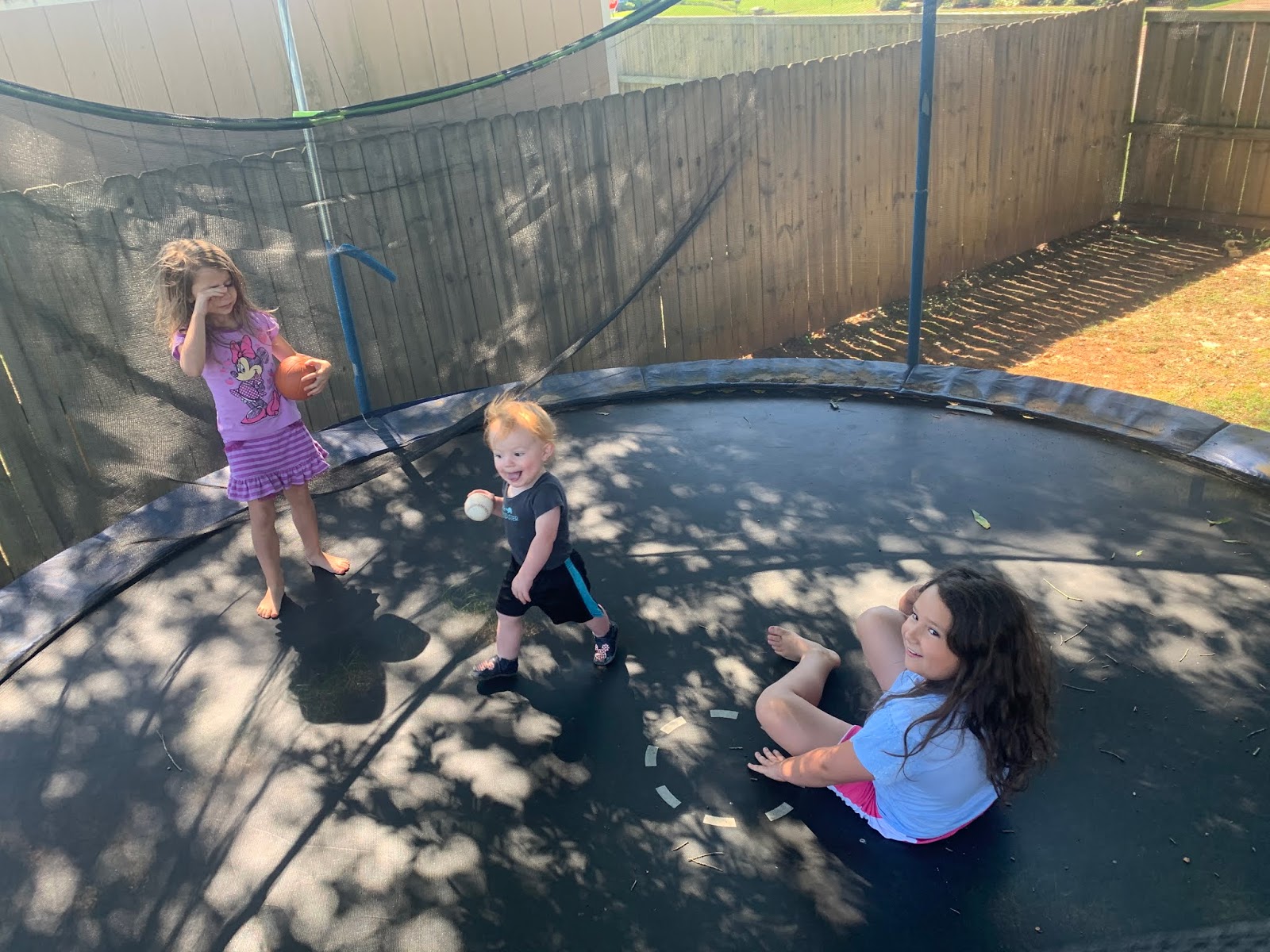 Wait...I know me and Sam were here at this event...Oh well, that's what happens while our mom is recovering, dad takes pictures, and they are pretty slim. Oh, I think there were some fireworks, but we've seen those before, so none made the blog. The boys just go wherever now, and Belle was super excited for Linley to be back in town after her trip to D.C. So, me, Ruby and Ansley hit every one of those jumpy houses, then got a giant crème filled cookie from Tees. And that was fun. I thought it was so sad at one jumpy house, we waited about 15 minutes for the girls to get in, then they took a wrong turn and left the jumpy house within like 30 seconds. Ruby's face was so sad...but later we joined that line one more time, and this time I told her to just play in there as long as she wanted, and only take that wrong turn when she was ready to come out....the picture below of her and Ansley behind the blue blow up was just one image of their 20 minute in that area. :)