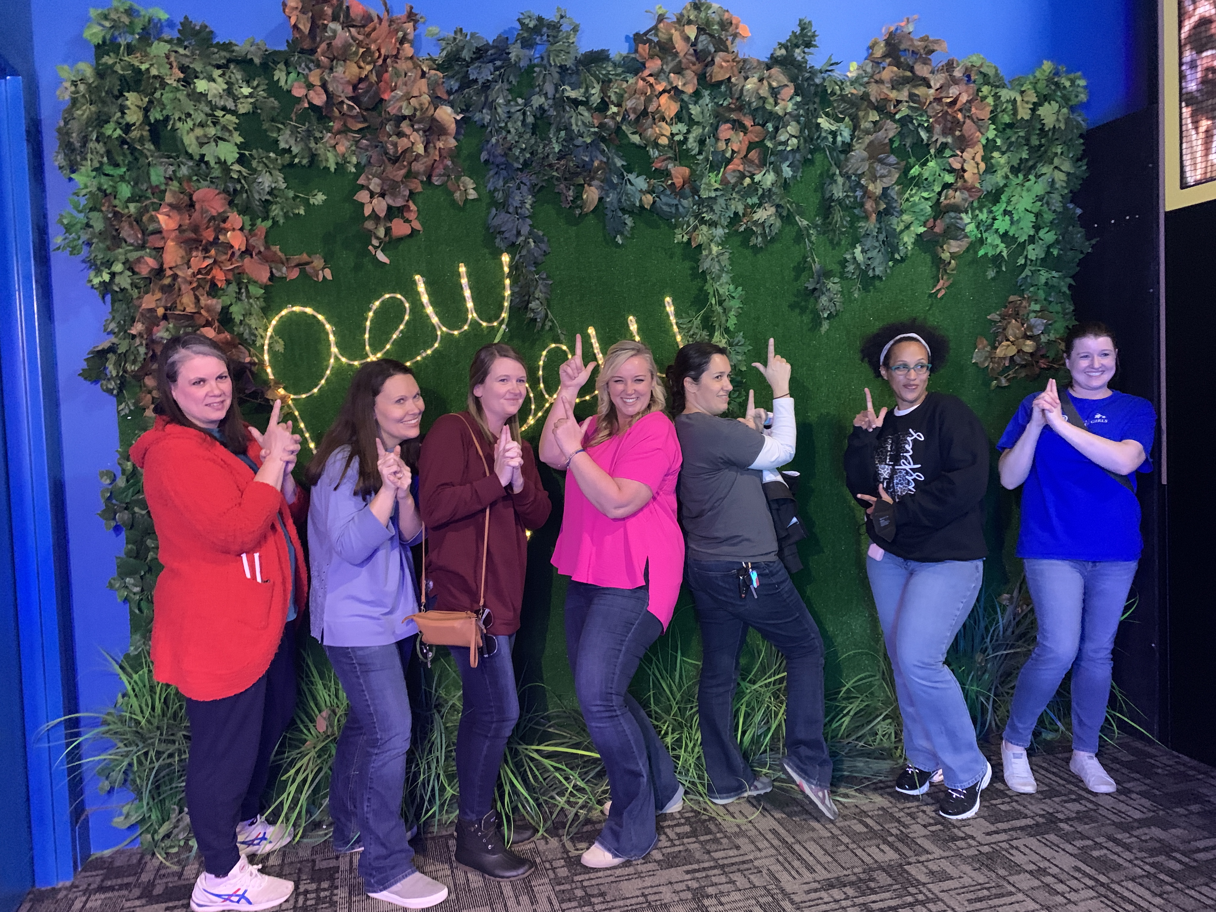 So the first thing I heard from mom and the girls was that when you go to play Laser Tag, you DO NOT where a neon shirt, as you will be a glowing target. Ruby told me "Mom was a light bulb, everybody shot her. I shot her three times." Ruby also told me that it was so funny when it was Mom's time to bowl one time, and she was over getting cheese fries. Everyone was hollering for her to run back, and she did, but not without her cheese fries. And apparently bowling got boring for all the girls except for Sarah Beth, who ended up bowling for everyone at the end. And there were smiles all around below, but the feedback I got was ditch the bowling, we want more laser tag. I am glad the girls had fun, and mom gets these times with them. And fun sometimes to do something different, as this one has traditionally been a tea or pottery or painting event. Pew Pew!