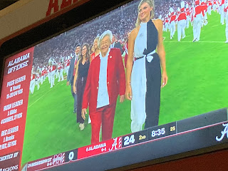 So, for the game...I was excited, thinking this may be our year to take Alabama down, as they don't seem to be as dominate this year. But I was not thinking the prior week getting beat by Tennessee would help, and it did not. They starting scoring and by halftime, it was over. We were planning to stay thru the whole halftime, but it was homecoming, and the band was not doing their normal routine. So we headed back to the car, with my knee aching the whole way with old man aches. We did see as we left the stadium that Kay Ivey was elected as homecoming queen. I think that is what happened.