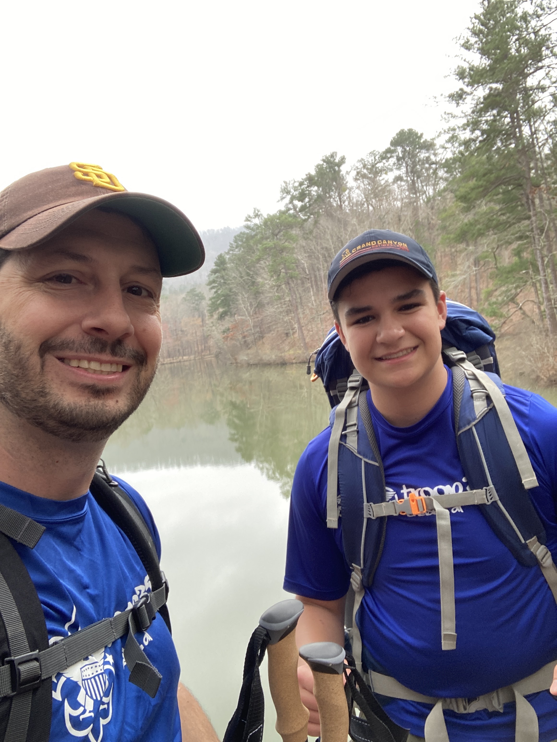 Just a practice hike to prepare for the Walls of Jericho. We hiked 5 miles with minimal elevation change, but good practice with 25 lbs on your back, and new trekking poles, and dealing with bits of rain here and there. Next weekend at the Walls we just do about the same...only with a 1700 foot elevation change down then up the next morning. Good practice, and always fun to be out there with Davis. He is leading the troop well now. I did not get to spend the night, as I needed to help with the Daddy Daughter dance preparations, but Davis stayed the night cooking a meal of rice and tuna he had prepped in his backpack. Grand Canyon elevation change will be 4460 feet, so I will take any prep work I can to make sure these knees hold up. Walls will be the better test.