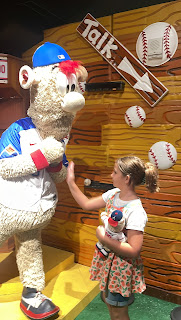 After getting a slight drizzle, and a little wet, and a short 40 minute rain delay, It was a great game going back and forth, with both teams smashing some home runs. We cheered for the Braves, and Toma-hawk chopped with everyone. And during the 4th inning, I walked down with the girls to meet Blooper himself, who came out to see his newest and biggest fan. While waiting for Blooper, Ruby looked up at me with a big smile and said, "DAD, I think I understand baseball now, it is just like kickball". She said this with excitement, sharing that she was finally understanding this great national pastime.